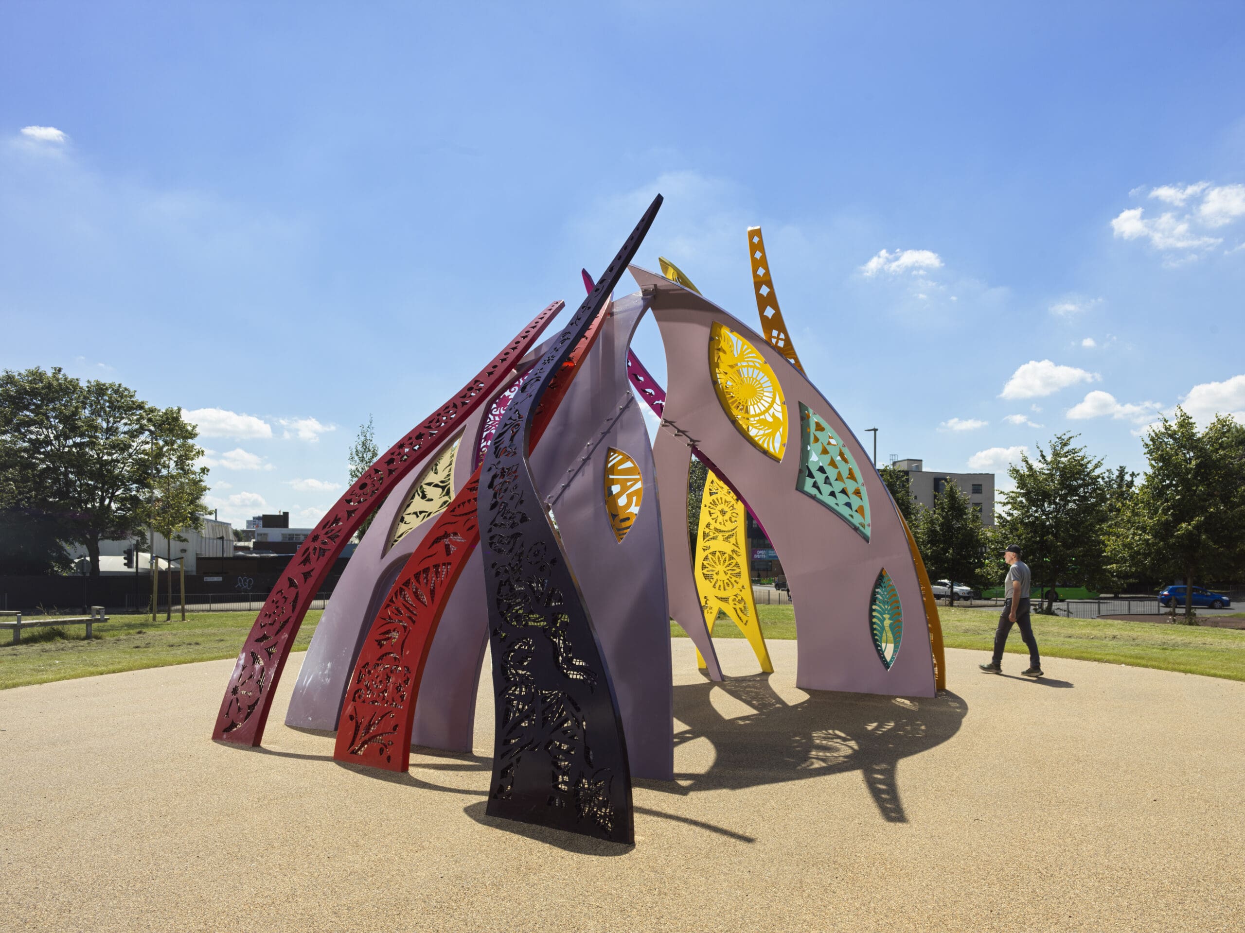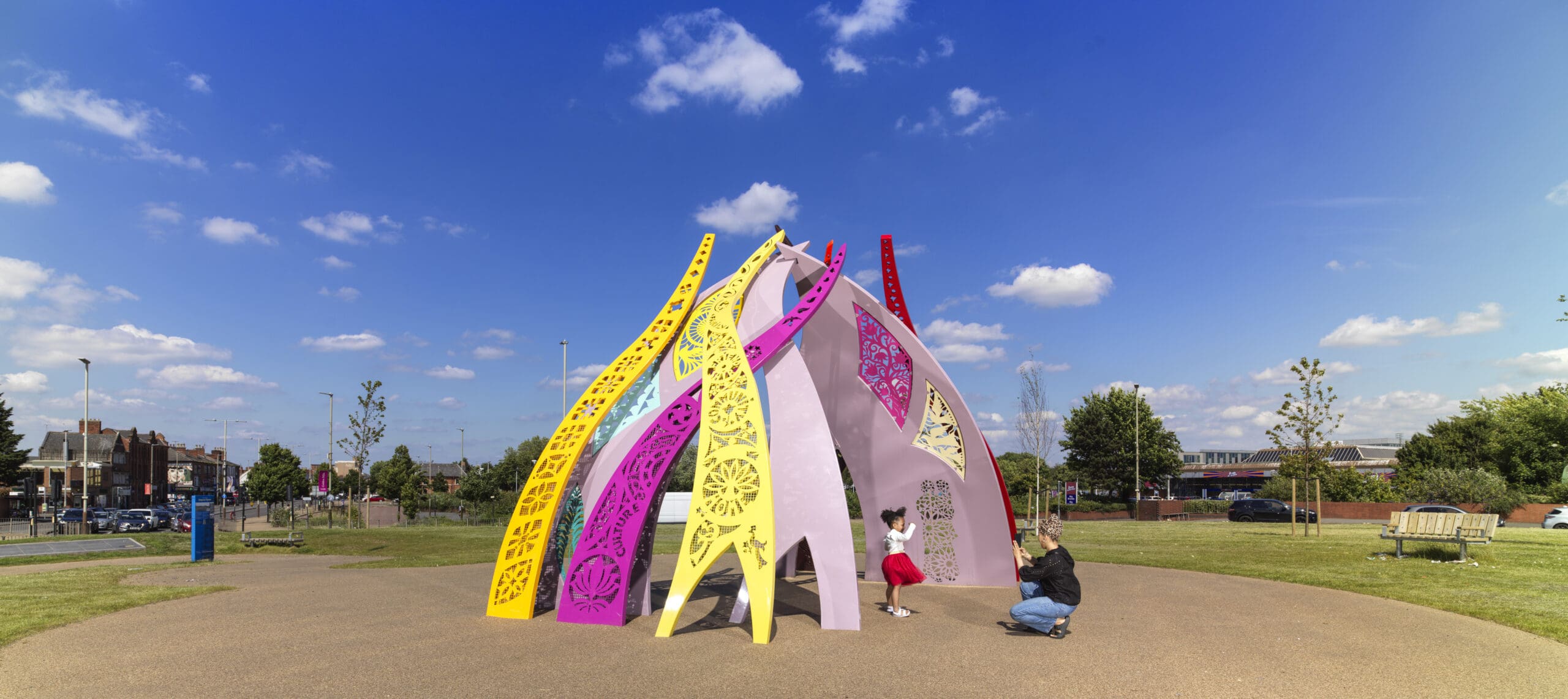 Another major achievement for our team has been the completion of the Public Art Development at Marefair Heritage Park in Northampton. This exciting new green space features 16 striking Corten structures and two grand arches, connecting the town centre to the train station and helping to welcome more visitors into the heart of Northampton. The project was delivered in collaboration with Northampton Council, Jeakins Weir, and BDP Architects, and showcases the creative possibilities of public art when combined with expert fabrication.