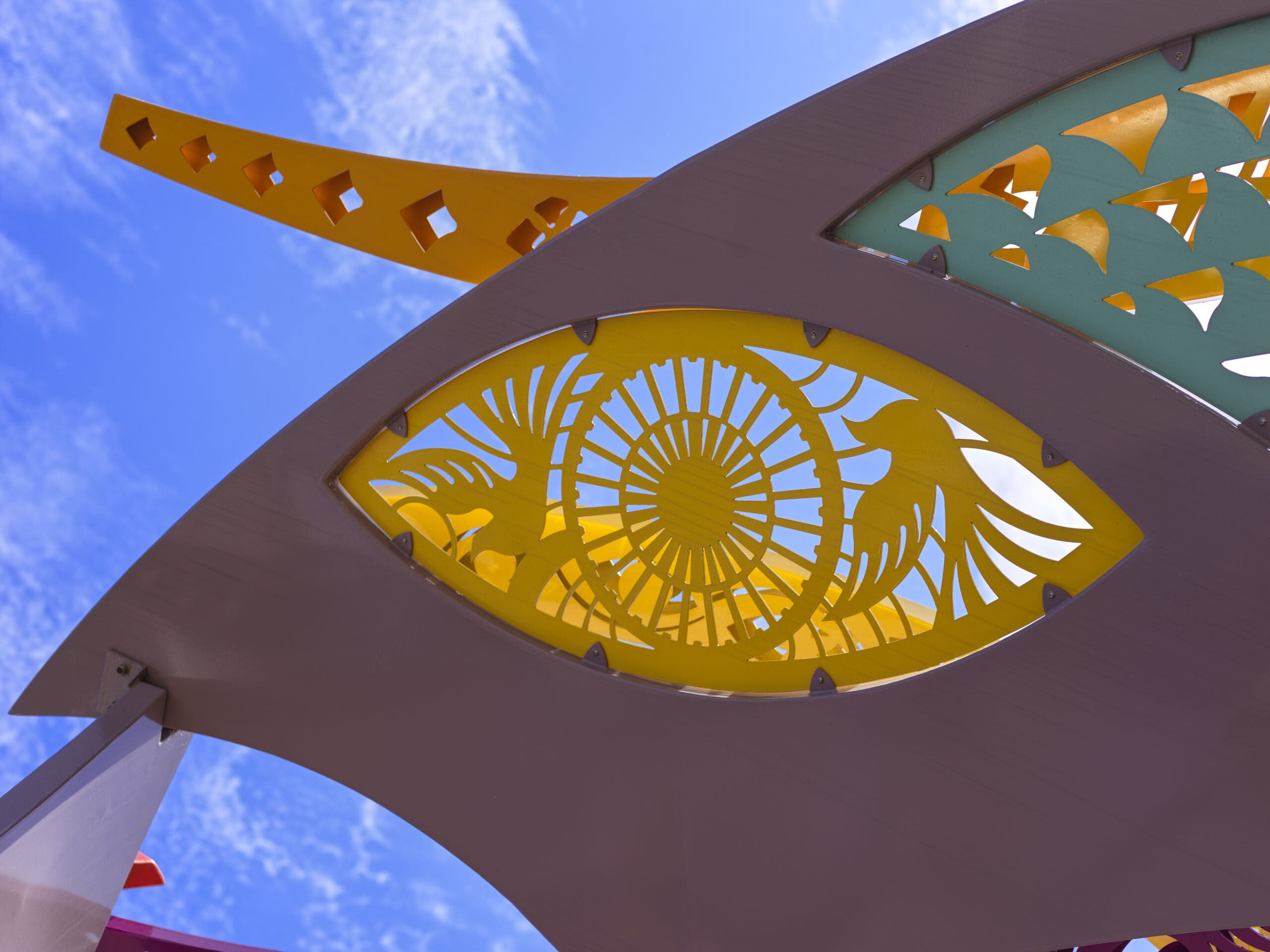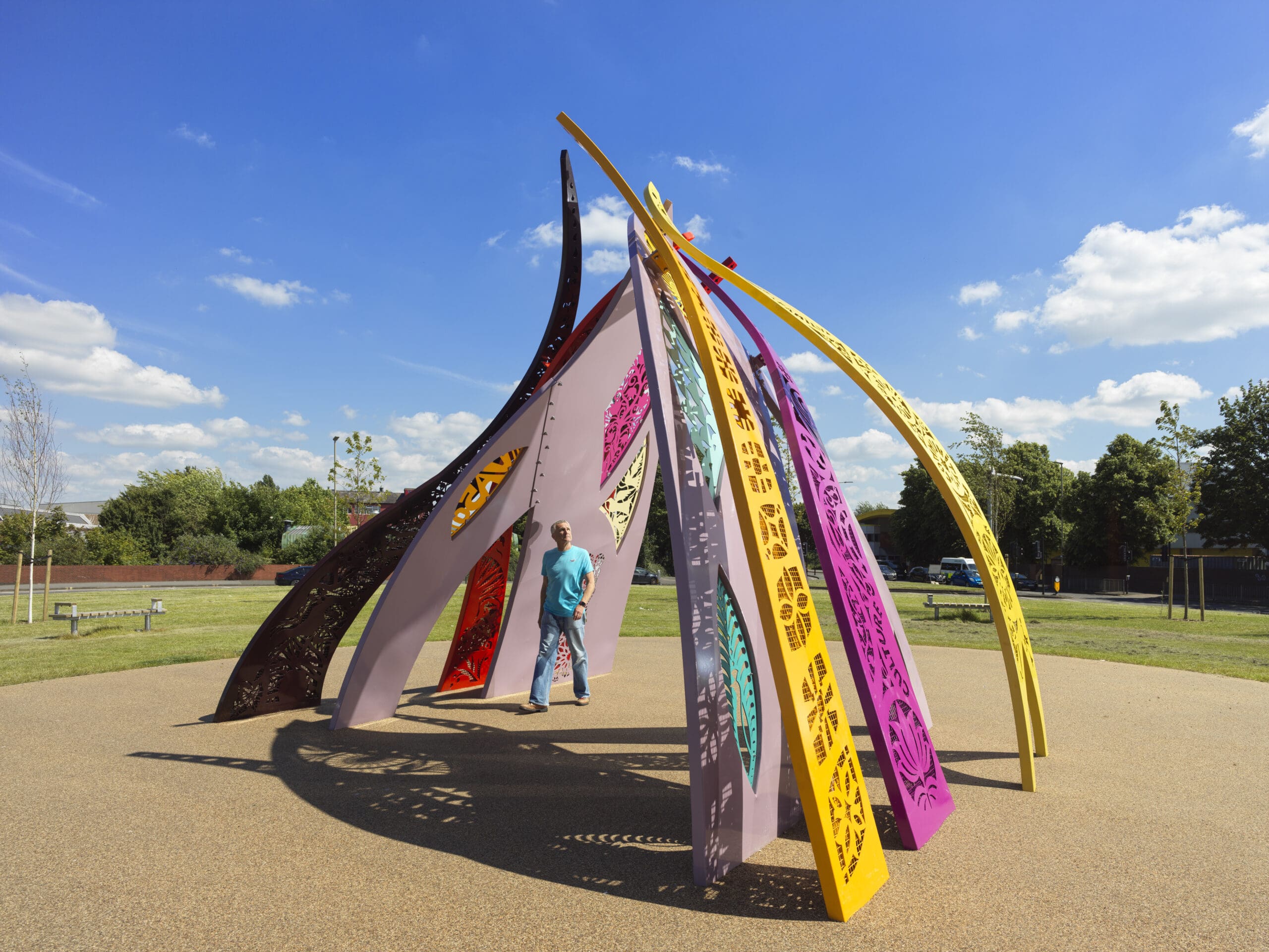 Some notable selected commissions include the ‘Whirlpool� The Warmies, Newport, Hobsons Bay, ‘The Art Pass Reimagined�a mural project in Chelsea, ‘The Gates of Earthly Delights�Williamstown Botanic Gardens, and ‘Connected Stories�a Textile hanging, Melton Library, Melbourne.