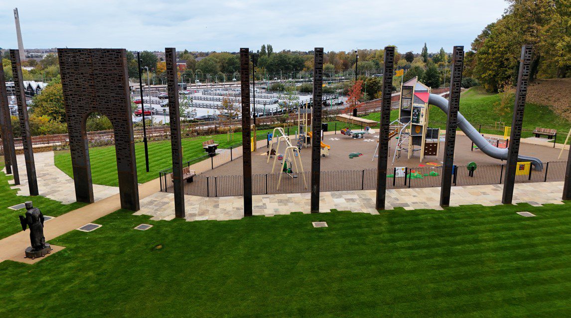 Developed in close collaboration with Northampton Council, Jeakins Weir, and BDP Architects, the project has transformed the area into a vibrant green space that celebrates the town’s heritage while promoting connection and accessibility. The Corten steel elements, known for their distinctive weathering appearance, provide a unique visual character that will continue to evolve over time, blending beautifully with the natural surroundings.